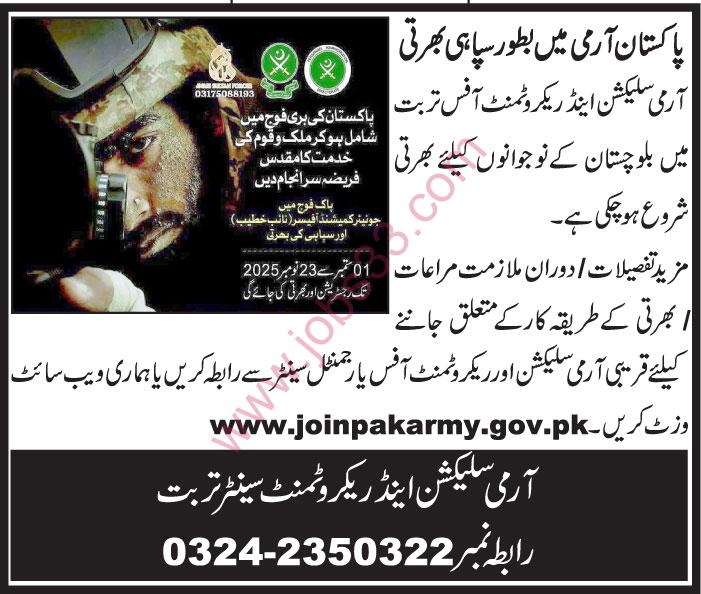 Tagged as: Apply for Pak Army jobs online, Army jobs for Balochistan students, Government jobs in Turbat 2025, Jobs near me in Turbat, Join Pakistan Army 2025, Military jobs in Pakistan 2025, Pak Army jobs for matric pass 2025, Pak Army jobs for middle pass 2025, Pak Army online registration 2025, Pak Army physical test requirements 2025, Pakistan Army jobs apply online 2025, Pakistan Army jobs in Turbat, Pakistan Army soldier jobs 2025