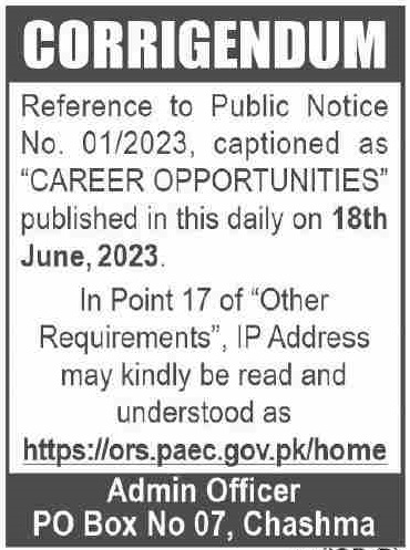 Here are some of the new govt jobs 2025 available at PAEC Mianwali: